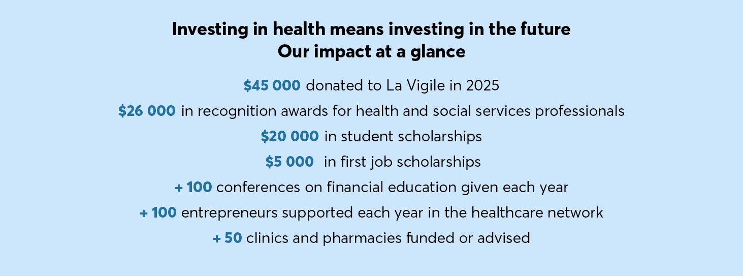 The more members the Caisse has from the health, social services and life sciences sector, the greater our financial capacity will be to give back to your community.
